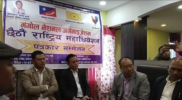सागर मंगाेल,झापा/मंगोल नेशनल अर्गनाइजेशनको छैठौं राष्ट्रिय महाधिवेशन यही मंसिर ९ र १० गते मोरङको उर्लाबारीमा र ११ गते लेटाङ बजारमा सम्पन्न हुन लागिरहेको छ । सोही महाधिवेशनको तयारी बारे जानकारी गराउँदै एम.एन.ओ. छैठौं राष्ट्रिय महाधिवेशन मूल आयोजक सभाले २३ नोभेम्बर विहिवार मोरङको उर्लाबारी स्थित न्यु सम्राट होटलमा पत्रकार सम्मेलन गरेको छ ।