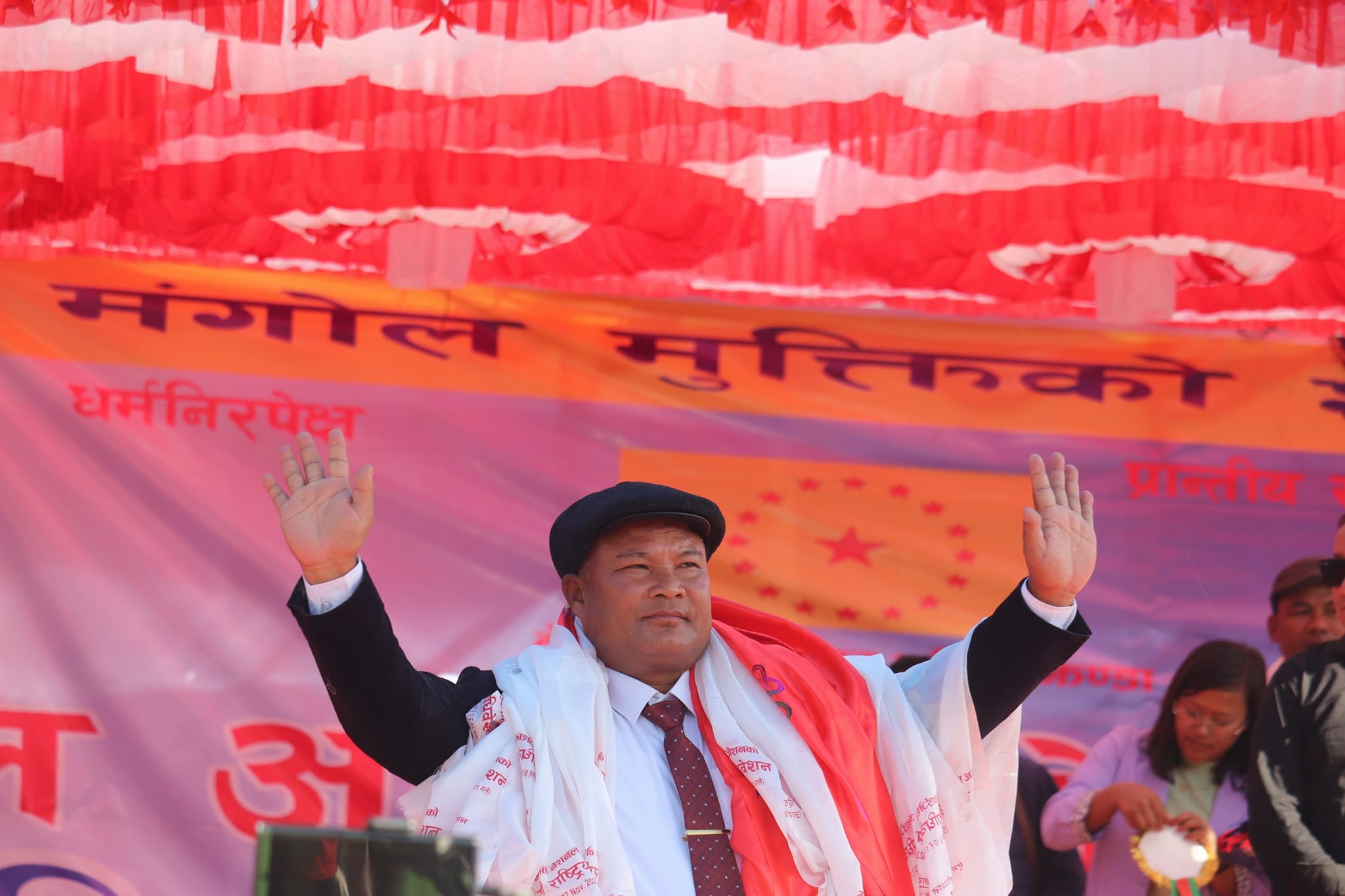 सागर मंगाेल,झापा/नोभेम्बर २७ सोमबारका दिन लेटाङ बजारमा निकै घुइंचो छ । लेटाङ बजारका स्थानीय वाँसीहरु भन्छन् "इतिहासमै पहिलो पटक लेटाङमा यत्तिको ठूलो भिड देखिएको हो।" मूलबासी मंगोल जिन्दावाद, मंगोल मंगोल एक हौ, संविधानमा मूलबासी मंगोल लेख, लोकतन्त्र हाम्रो प्राण हो, धर्मनिरपेक्ष हाम्रो मुटु हो, प्रान्तीय सरकार हाम्रो अंग हो, मंगोल नेशनल अर्गनाइजेशन जिन्दावाद, महामानव ड. गोपाल गुरुङ अमर रहुन यस्तै नाराहरुले गुञ्जयमान हुँदै र्यालीले लेटाङ बजारको परिक्रमा गर्यो । यतिबेला लेटाङ बजारमा मंगोल नेशनल अर्गनाइजेशनले राजनैतिक भुकम्प नै ल्याएको छ । हजारौँको उपस्थितिमा मंगोल नेशनल अर्गनाइजेशनको ऐतिहासिक छैठौं राष्ट्रिय महाधिवेशन सम्पन्न भएको छ ।.jpg)