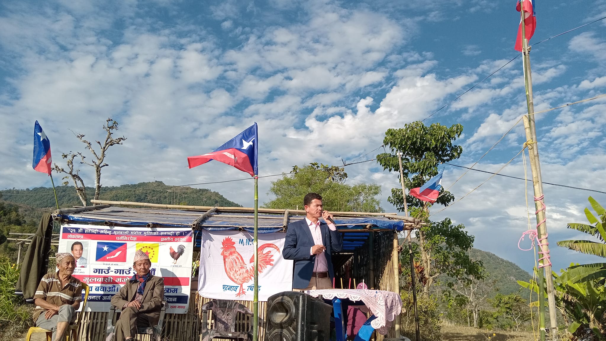 कार्यक्रममा अतिथिहरु बुल बहादुर गुरुङ, बानिरा मेचे, सागर राई, विशिष्ट अतिथी श्याम लिम्बूले शुभकामना मन्तव्री राख्नुभएको थियो । कार्यक्रमलाई सम्बोधन गर्दै प्रमुख अतिथी सन्तोष तामाङले मूलबासी मंगोलहरु आफ्नो अधिकार र अस्तित्व सुनिश्चित गर्नलाई एम.एन.ओ. मा आवद्ध हुनुको विकल्प नरहेको बताउँदै मुलुकको विकास र समृद्धिको निमित्त मंगोल नेशनल अर्गनाइजेशनले देशको राजनैतिक सत्ता सम्हाल्नै पर्ने अपरिहार्य रहेको बताउनुभयो । साथै उहाँले नवनिर्वाचित सभाका पदाधिकारीहरुलाई पद तथा गोपनीयताको सपथ ग्रहण गराउँदै सफल कार्यकाल शुभकामना व्यक्त गर्नुभयो । स्थानीय लोक समुदायको सौहार्दपूर्ण उपस्थितिमा सम्पन्न उक्त कार्यक्रमको सभाध्यक्ष सन्त लिम्बू रहनुभएको थियो भने हस्त बहादुर राईले स्वागत मन्तव्य राख्नुभएको सो कार्यक्रम झापा जिल्ला सचिव सागर मंगोलले सञ्चालन गरेका थिए ।