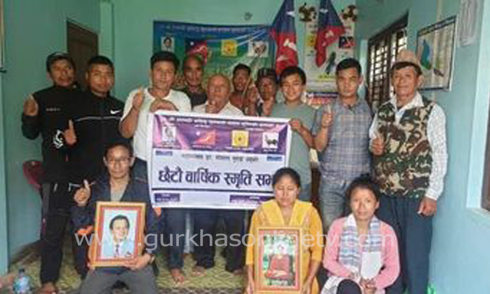 मंगोल नेशनल अर्गनाइजेशन जिल्ला सभा गोरखा र सहिद लखन गाउँ सभाको आयोजानामा गरी गोरखा जिल्लाका दुई स्थानहरुमा मंगोल नेशनल अर्गनाइजेशनका फाउन्डर प्रेसिडेन्ट युगपुरुष अमर ड.गोपाल गुरुङज्युको छैटौ वार्षिक स्मृति दिवस क्रमशः गोरखा बजारस्थित एम.एन.ओ.जिल्ला सभा गोरखाको कार्यालयमा र सहिद लखन गाउँपालिका वडा न.-०६, डिहि गाउँ,ज्यामिस्वरामा सभ्य र भव्यरुपमा कार्यक्रम सम्पन्न भएको छ ।